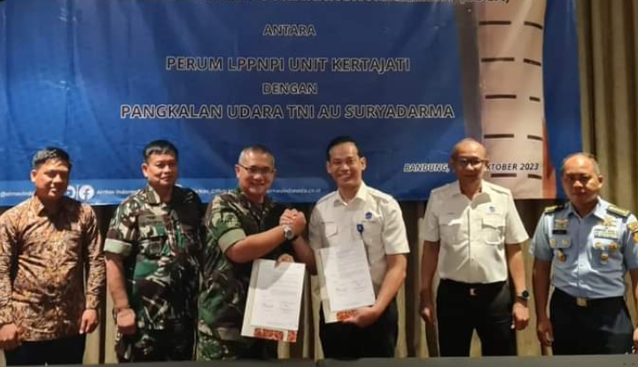 BERITA POLRI INVESTIGASI | Subang, – Bertempat di Hotel Aston Pasteur, Komandan Pangkalan TNI Angkatan Udara (Danlanud) Suryadarma Marsma TNI Sri Duto Dhanisworo, S.A.P., M.Si menanda tangani naskah kerjasama Letter of Operational Coordination Agreement (LOCA) antara Perum LPPNPI Unit Kertajati dengan Pangkalan TNI Angkatan Udara (Lanud) Suryadarma. Jumat (20/10).