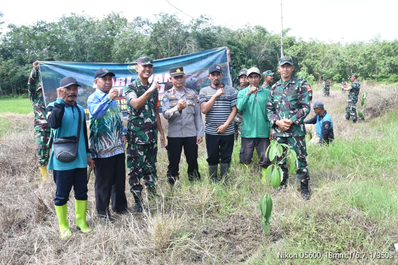 BERITA POLRI INVESTIGASI | BARABAI, –  Kodim 1002/HST bersama Dinas Lingkungan Hidup Hulu Sungai Tengah dan BNI Cabang Barabai menggelar karya bakti penghijauan penanaman pohon dalam rangka memperingati Hari Juang TNI AD ke 78 Desa Hawang Kecamatan Limpaso Kab. Hulu Sungai Tengah, Kamis 14/12/2023.