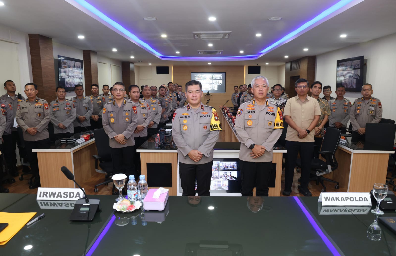 Kegiatan dipimpin oleh Wakapolda Kepri Brigjen Pol Dr. Anom Wibowo, S.I.K., M.Si., dan dihadiri oleh Irwasda Polda Kepri Kombes. Pol.Tato Pamungkas Suyuno, S.I.K., M.Si., Pejabat Utama Polda Kepri, Wakapolresta Barelang, serta para Kapolres/ta jajaran yang mengikuti secara langsung maupun melalui zoom meeting.