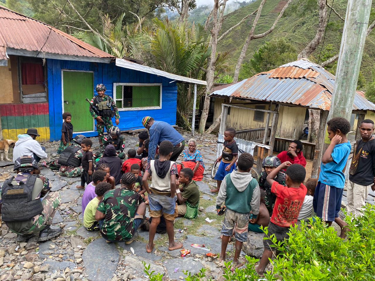 BERITA POLRI INVESTIGASI | Papua, – Pos Kulirik Satgas Yonif RK 115/ML melaksanakan kegiatan anjangsana dan bersama masyarakat melaksanakan karya bhakti membersihkan sepanjang lintasan jalan masuk Kampung bersama warga yang berada di Kampung Kulirik, Distrik Mulia, Kabupaten Puncak Jaya. Senin (11/9/2023).