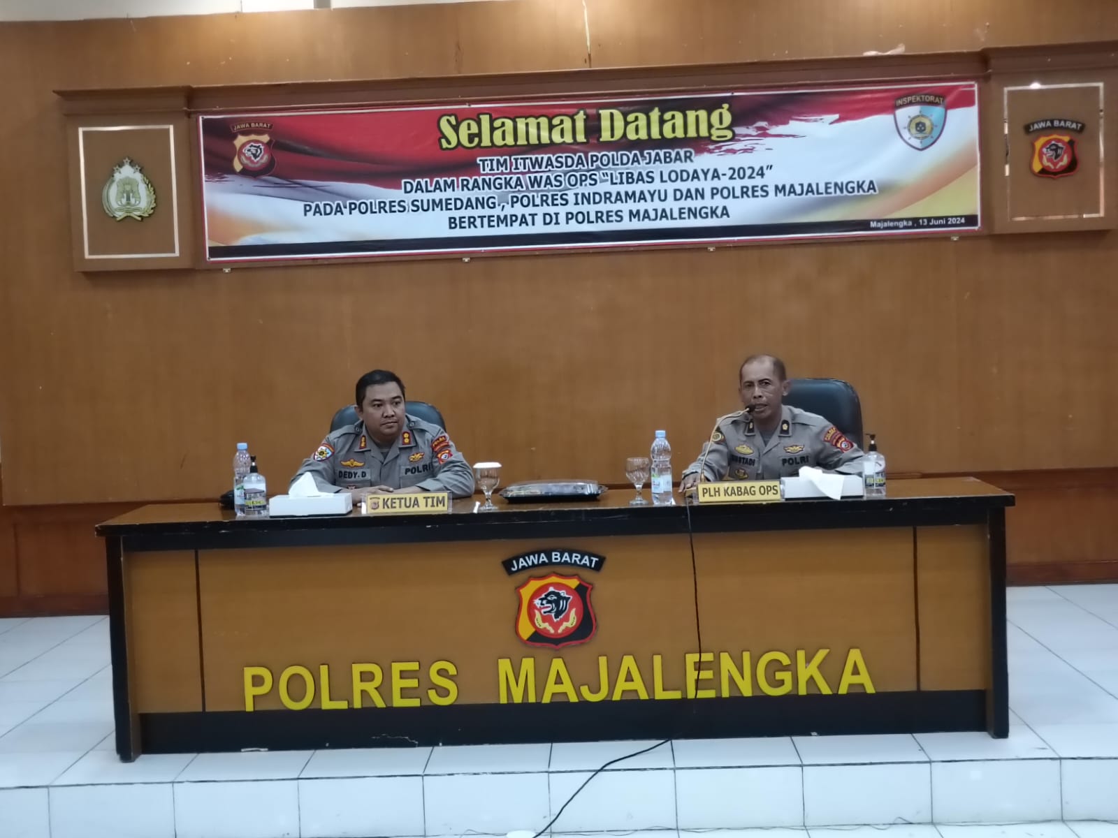 BERITA POLRI INVESTIGASI | Majalengka, – Tim Itwasda Polda Jabar melaksanakan kegiatan Was Ops “Libas Lodaya 2024” di Polres Majalengka. Kegiatan ini juga mencakup Polres Sumedang dan Polres Indramayu, dengan titik sentral pelaksanaan di Polres Majalengka. Tim Was Ops “Libas Lodaya 2024” disambut oleh Kapolres Majalengka, AKBP Indra Novianto, S.I.K., M.Si., CPHR, yang diwakili oleh Plh Kabag Ops Polres Majalengka, Kompol H. Kustadi, SH.Kamis (13/6/2024).