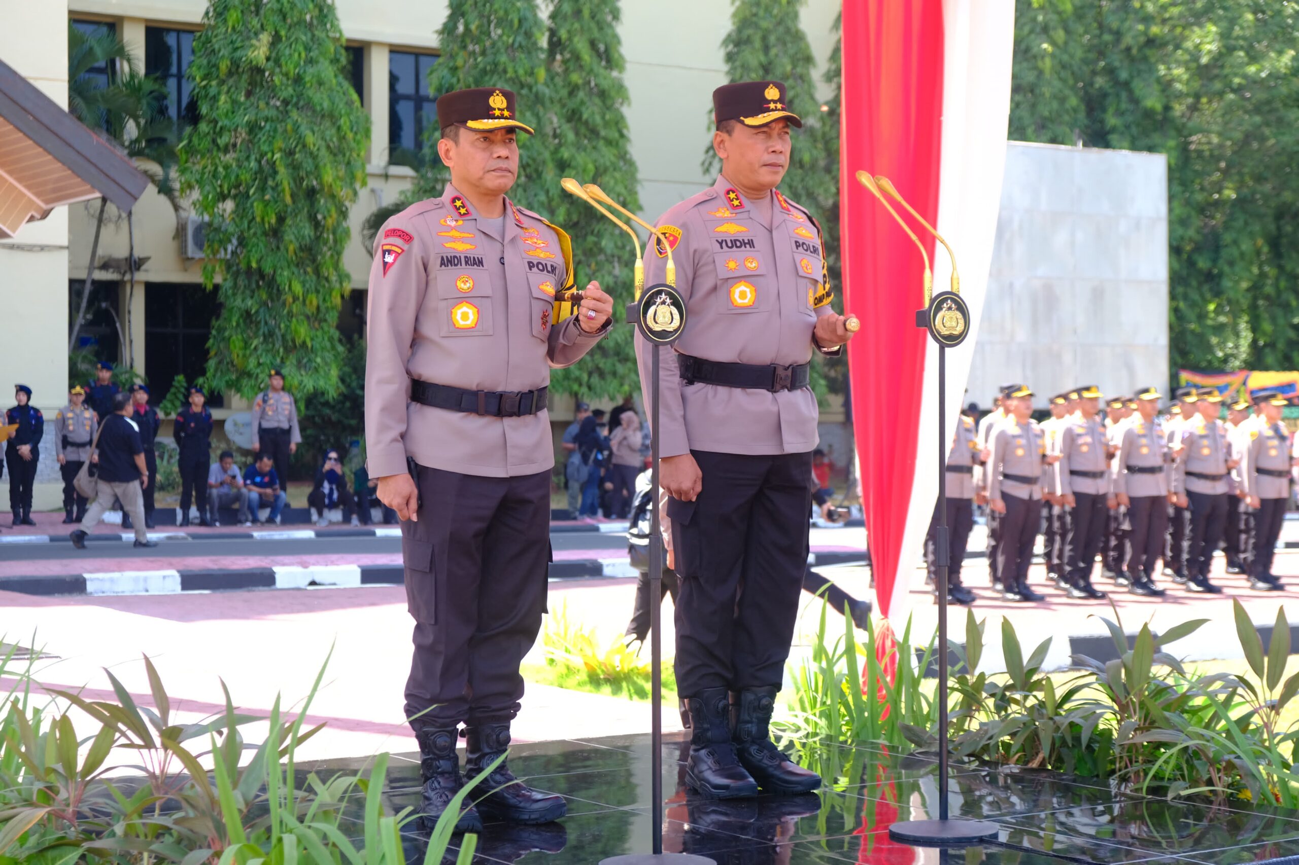 BERITA POLRI INVESTIGASI I Kepala Kepolisian Daerah (Kapolda) Sulawesi Selatan (Sulsel) resmi berganti. Kapolda Sulsel yang baru Irjen Pol. Dr (c) Yudhiawan S.H., S.I.K., M.H., M.Si. didampingi istrinya, Ny. Yunita Yudhiawan tiba di Markas Polda Sulsel di Makassar, Rabu (02/10/2024).